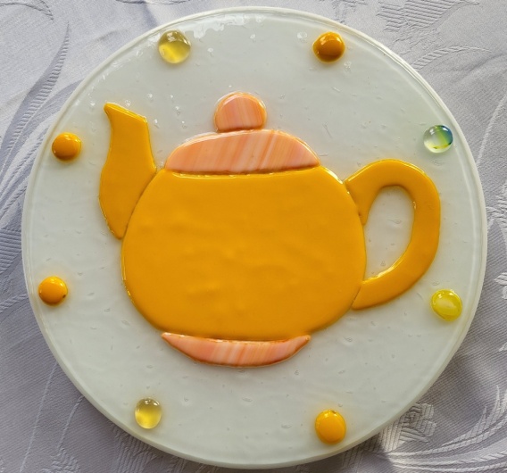 Patera szklana ze szkła fusingowego. Średnica 28 cm , wysokośc 3 cm.
