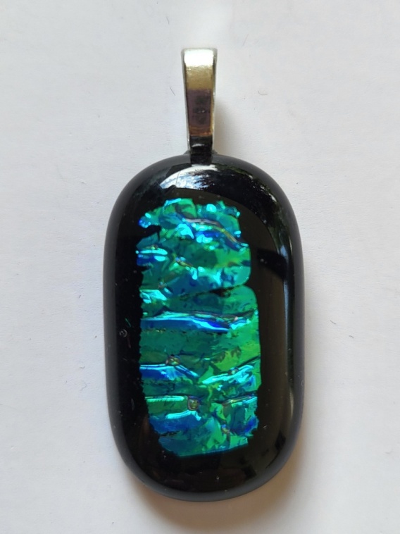 Zawieszka ze szkła dichroicznego. Waga zawieszki 11 g, długość 4,5 cm.
