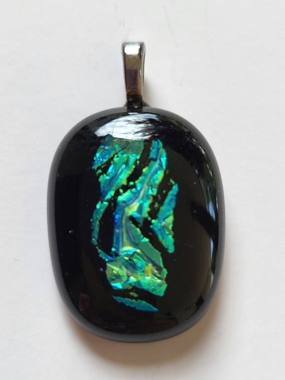Zawieszka ze szkła dichroicznego. Waga zawieszki 14 g, długość 4 cm.