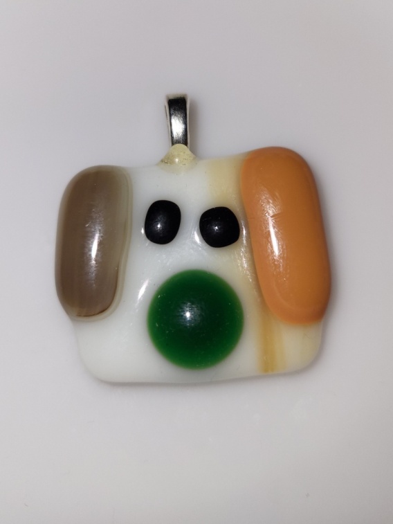 Zawieszka ze szkła fusingowego oraz dichroicznego. Waga zawieszki 12 g, wymiary 4x3 cm.