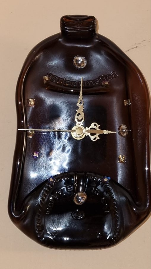 Zegar z butelki szklanej. Z uchwytem do zawieszenia.